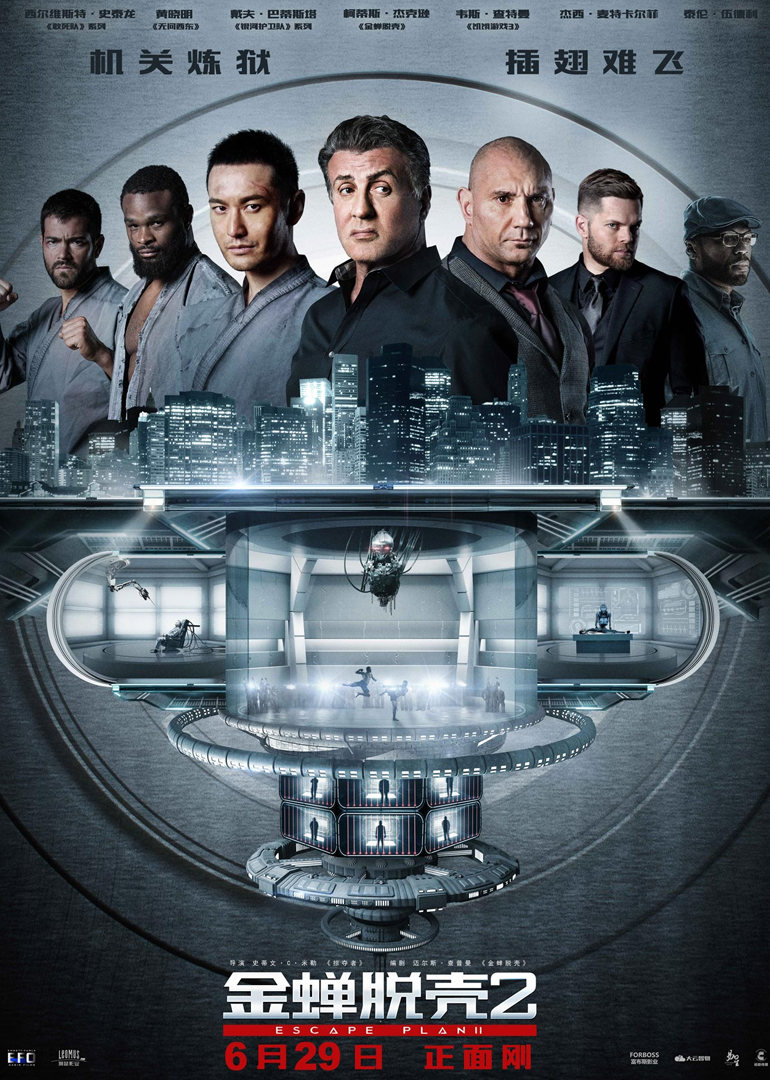 2013年,《金蝉脱壳》中史泰龙和施瓦辛格联手越狱还原“真人魂斗罗”组合时隔四年,续作《金蝉脱壳2》回归,灵魂人物超级硬汉史泰龙重出江湖,再次出演运筹帷幄的越狱专家,携手黄晓明和戴夫·巴蒂斯塔等,再掀
